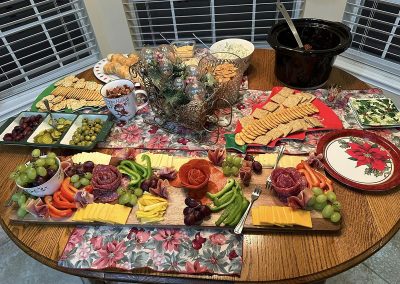 The Bishop Lake Book Club group carried out their theme from The Christmas Train into the evening festivities. A beautiful dinner and Christmas decorations galore at the Klueppel home, made for a very special evening. Even “Tyrone” was in attendance.