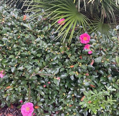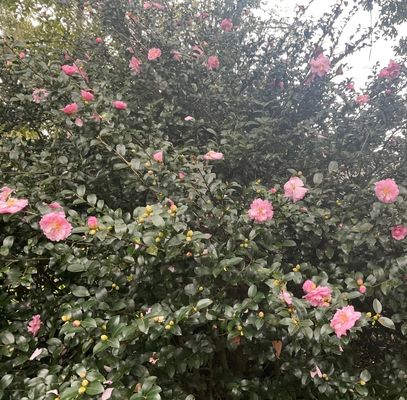 Unfortunately the weather did not cooperate, but here are some of the lovely camellias blooming in Deercreek….