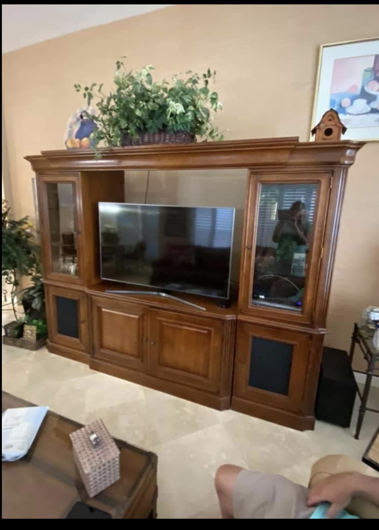 3 piece entertainment center tv in picture is 56 inch might hold 60 inch.