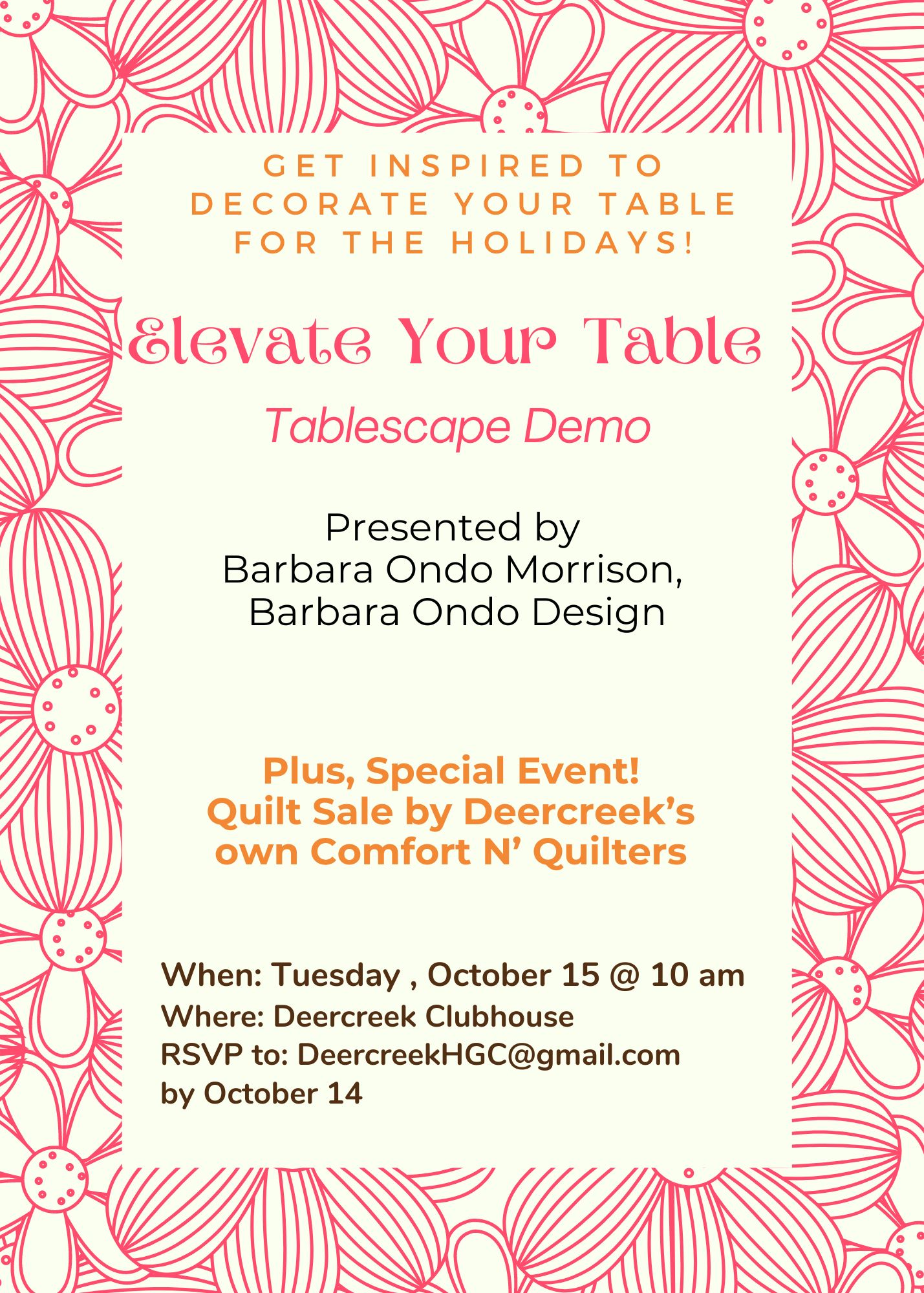 This program is for Home and Garden Club members and Deercreek residents who enjoy home and garden topics. Be sure to put it on your calendar now!