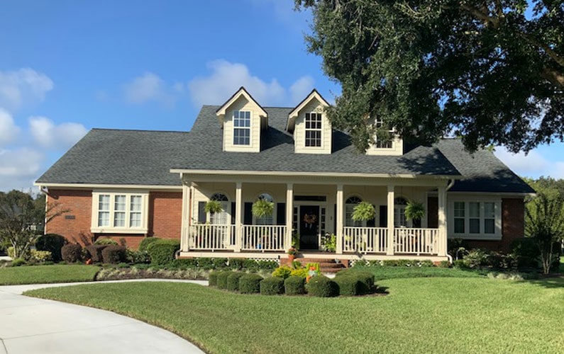 When one looks at the front porch with its hanging baskets of ferns, you want to just take some time and sit on the porch swing and relax and stay awhile. The planting beds on both sides of the curving walkway lead to Jeff and Nancy Blacker’s low country home. The beds contain a variety of textures and colors such as purple, yellow, white and several shades of green from the bushes, grasses and shrubs. The potted planters on either side of the harvest wreathed front door are filled with multicolored foliage that compliments the overall color scheme of the landscape plantings. Their back yard gently slopes toward the pond and features a sitting area with a lovely view. The Blacker’s were quick to share how pleased they were with their yard service company.