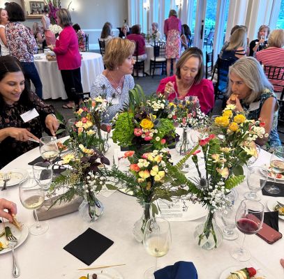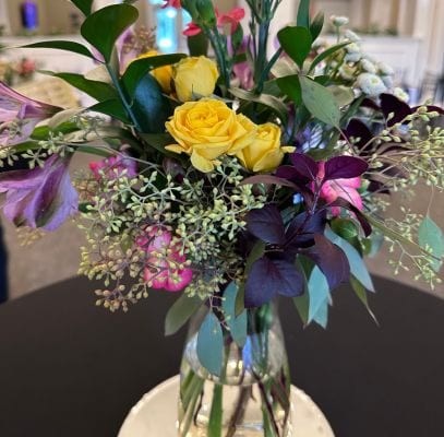 Thank you especially goes to Janet Daechsel and her team of helpers who showed us how to turn this cart full of flowers into beautiful arrangements, including the little bud vases which were available as keepsakes