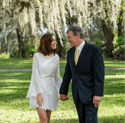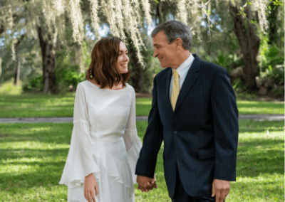 While serving as Press Attaché for the Ukrainian Embassy, I met my husband, long time Deercreek resident, Bert Watson. Bert was a lobbyist for Defense and Technology and had taken a specific interest in Ukraine. Bert had personally visited Ukraine 5 times and had developed personal and working relationships with Ukrainian Diplomats in Washington, DC. It was during one of those meetings with a diplomat in DC, that Bert realized he had left his luggage in his UBER. The diplomat told him not to worry that he had someone who could help him find the driver and have his luggage returned. That person was, Natalia. It was a brief meeting, but when Bert asked for her contact info to send a thank you note for her help, he and Natalia began corresponding via Facebook. A month later, Bert visited Washington for their first date, which lasted three days, in which the two were inseparable. After several months of communicating and commuting back and forth, between Washington DC and Jacksonville they became engaged. Two months later, they were married. Natalia’s only request was to be married beneath the beautiful canopy of Spanish moss that adorns so many of our southern trees. A small reception followed at their beautiful Deercreek home. Natalia remained in Washington for one year, commuting back and forth between the two states until completing her employment contract. She is now a producer with NBC-First Coast News with the weekday television show, First Coast Living and she was recently nominated for the position of “Honorary Council for Ukraine” in Jacksonville.