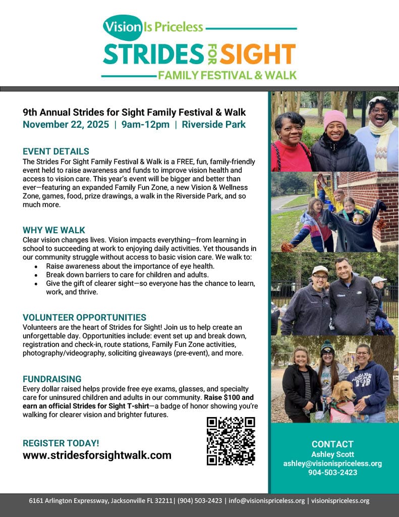 Strides for Sight Walk! Coming soon!!!! The 9th Annual Family Festival & Walk is coming up. Let’s show our support at this event. Details to follow in the upcoming months on this but below is the flyer for the walk.