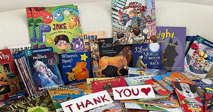Once again you have shown us how generous this community is. During our latest book drive for Books-A-Go Go, you donated more than 700 books, which will be given to a variety of local sources, including pediatric hospice children, the Mandarin Food Bank, The Bag Ladies (for bags going to children at Hubbard House) and Families of Slain Children to improve their literacy and develop their love of reading – or just give a book to a child who has never had their own book.
